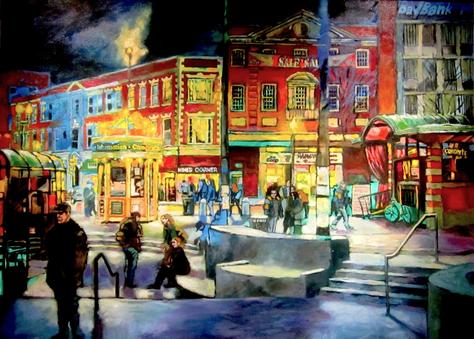 Harvard Square, Mass. Ave. oil on canvas 32x48'' $3300.